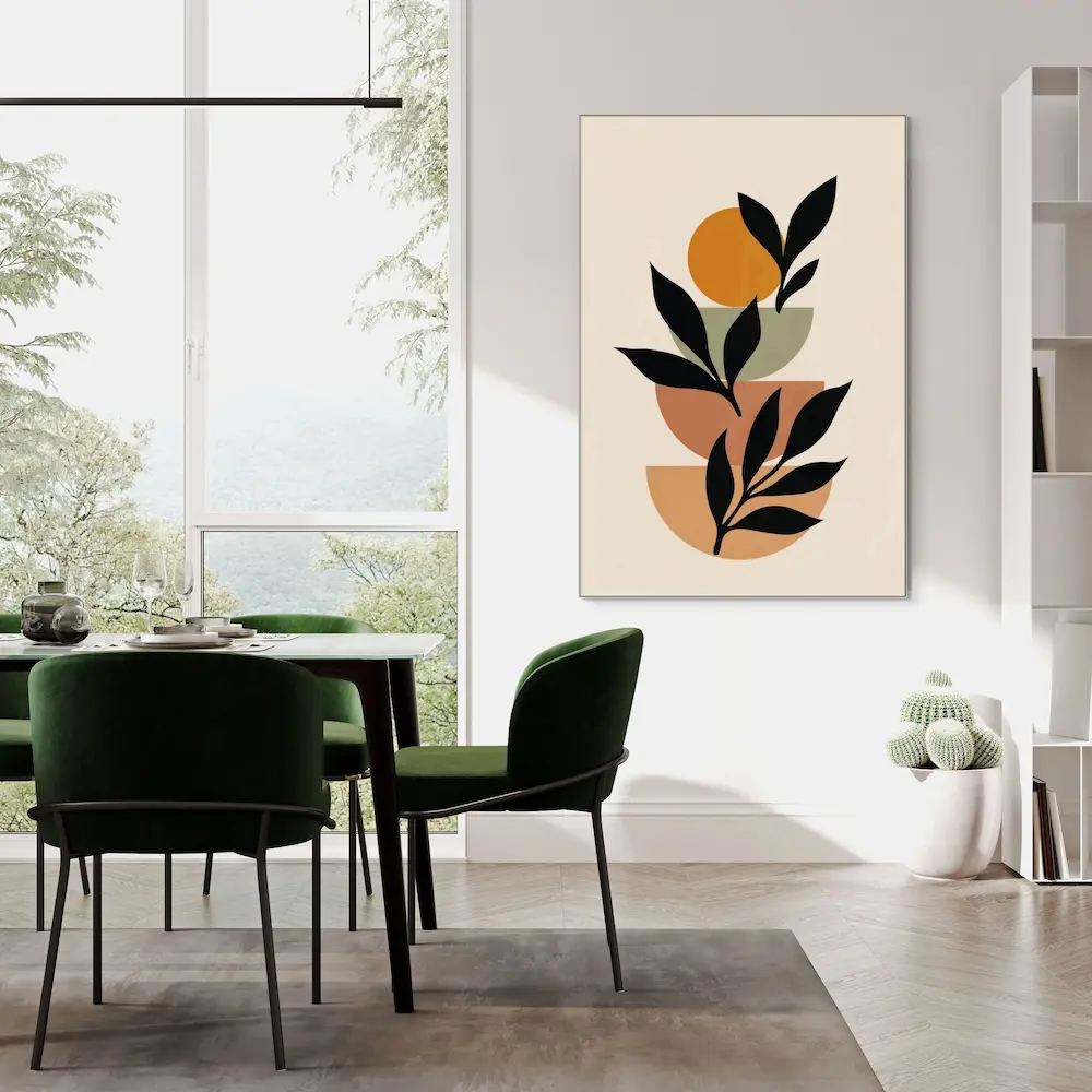 Sanfte Farben treffen auf ruhige Formen – ideal, um Räume zu entschleunigen und eine klare, leichte Atmosphäre zu schaffen. Die Motive lassen sich flexibel kombinieren und wirken besonders in Arbeits- und Wohnbereichen.