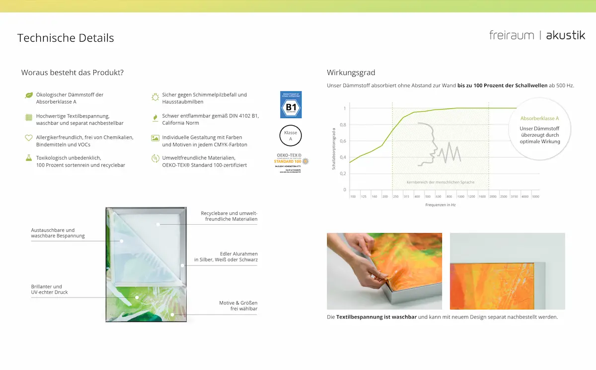 - Dämmstoff & Textilbespannung ÖKO-TEX 100 zertifiziert