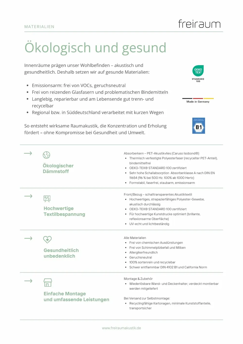 - Dämmstoff & Textilbespannung ÖKO-TEX 100 zertifiziert