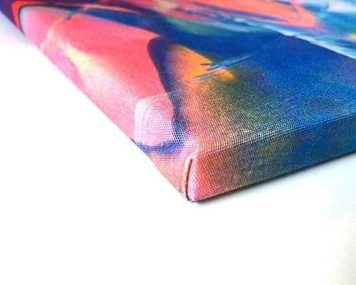 Die Reprografien werden im Thermo-Sublimationsdruck auf seidig glänzende Leinwand gedruckt und in Handarbeit auf Keilrahmen aufgezogen. Der fein strukturierte Stoff ist kratzfest, lichtbeständig und überzeugt durch einzigartige Haptik, brillante Optik und ausgezeichnete Schärfenwiedergabe. Die Leinwände sind wahlweise in 2 oder 4 cm Rahmentiefe erhältlich.